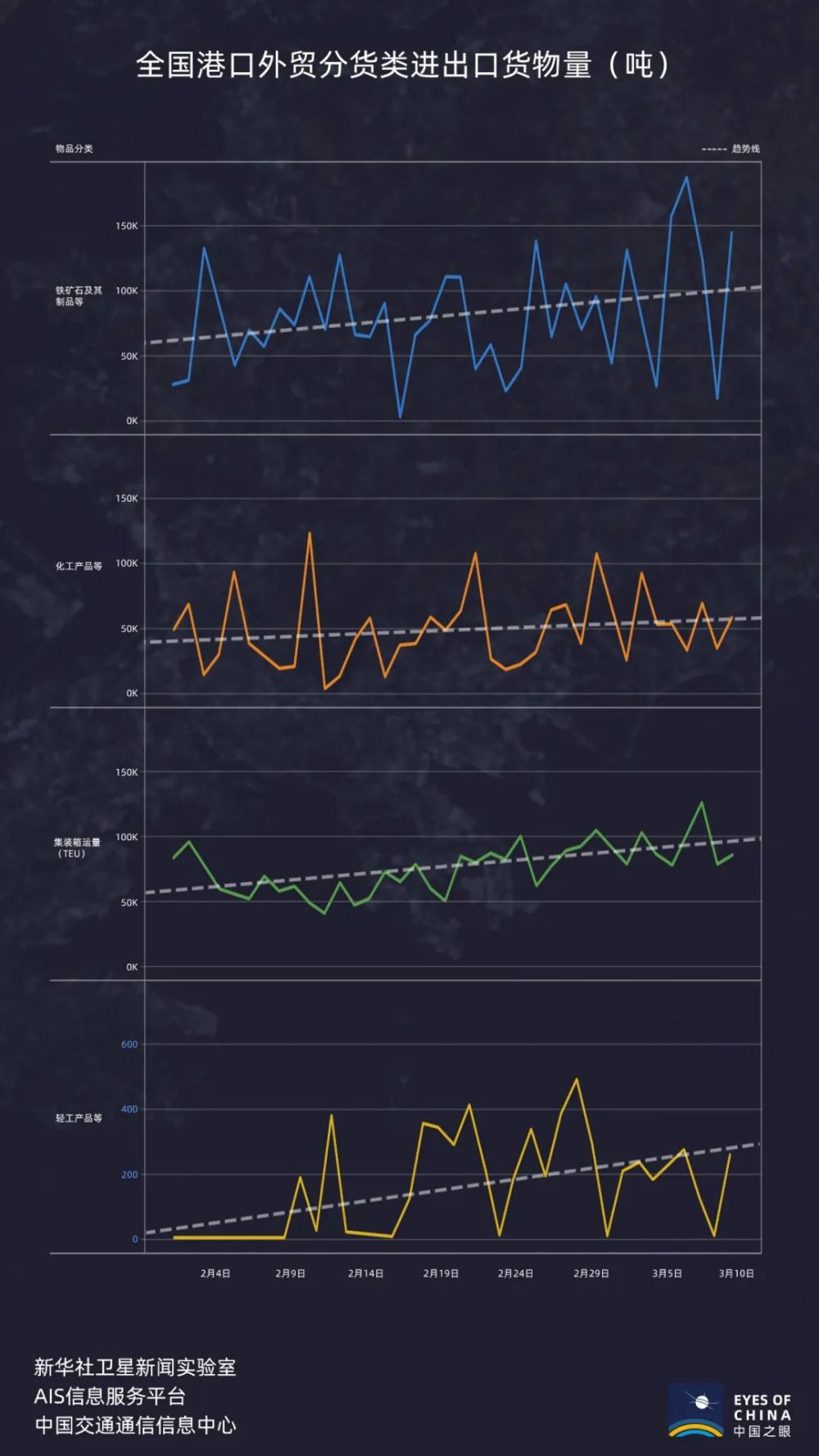 根據(jù)通信衛(wèi)星等方式獲得的船舶信息,中國沿海及內(nèi)河的船舶活躍度正在快速提升。