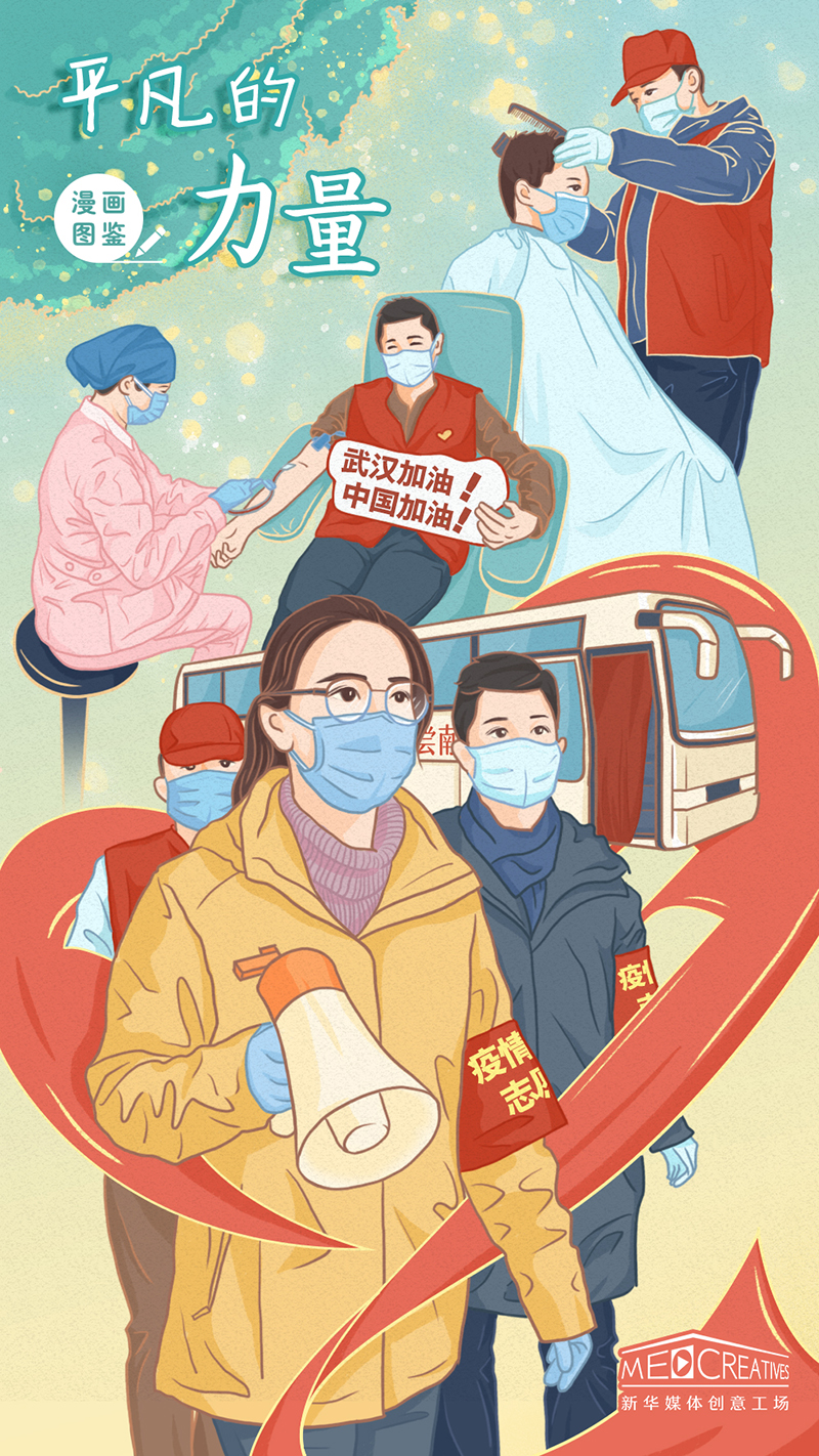 免費(fèi)為醫(yī)護(hù)人員烹飪盒飯的“雨衣妹妹”劉仙、有求必應(yīng)的湯紅秋及美德志愿者聯(lián)盟……一個(gè)個(gè)俠肝義膽的故事廣為流傳,一位位無(wú)私奉獻(xiàn)的凡人成為網(wǎng)紅。無(wú)數(shù)力量匯集、無(wú)數(shù)暖流涌動(dòng),穿過(guò)厚重的隔離、封閉的圍欄,為這座城市驅(qū)走黑暗、帶來(lái)希望。