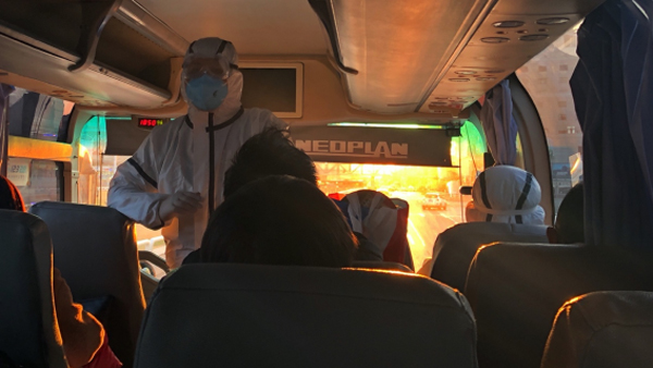 6、抵達(dá):17:45,專列抵達(dá)北京西站,乘客根據(jù)指引到所在區(qū)的集合地點集合,統(tǒng)一前往區(qū)里安排的分流地點。記者乘坐豐臺區(qū)組織的大巴,前往豐臺體育中心。