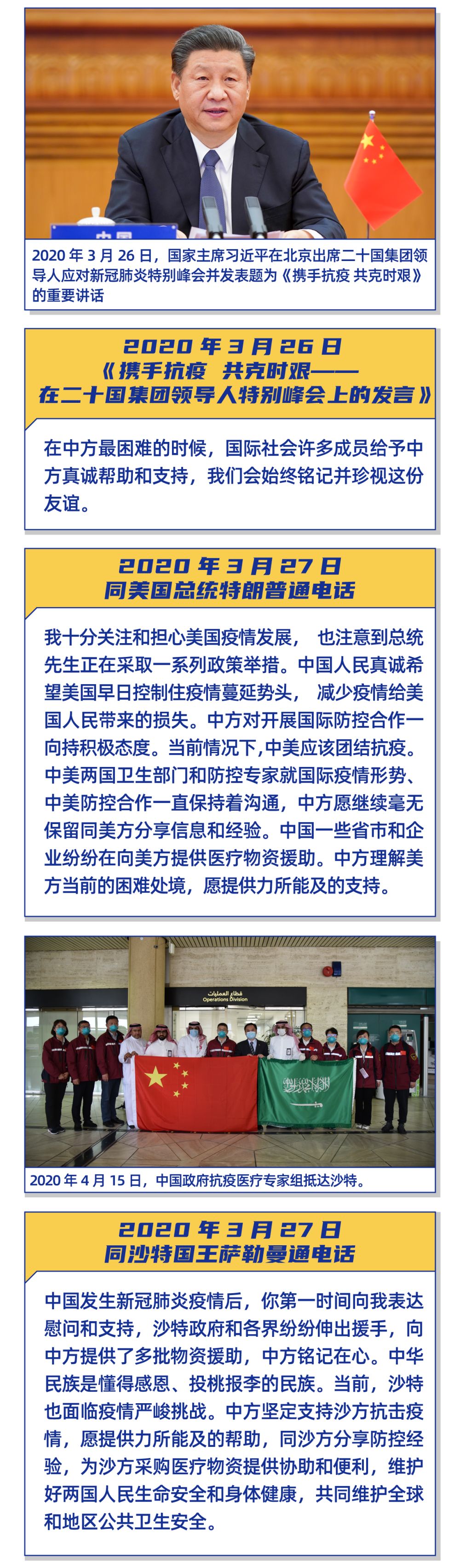 4月16日出版的第8期《求是》雜志發(fā)表中共中央總書記、國家主席、中央軍委主席習(xí)近平的重要文章《團結(jié)合作是國際社會戰(zhàn)勝疫情最有力武器》。文章第三專題著重強調(diào):患難見真情,中方贊賞國際社會給予我們的寶貴理解和支持,中國人民銘記在心,中華民族是懂得感恩、投桃報李的民族,中方始終在力所能及范圍內(nèi)為國際社會抗擊疫情提供支持。