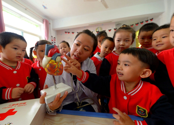 醫(yī)護(hù)人員講授關(guān)于心臟的常識,教育孩子們珍愛生命王曉攝