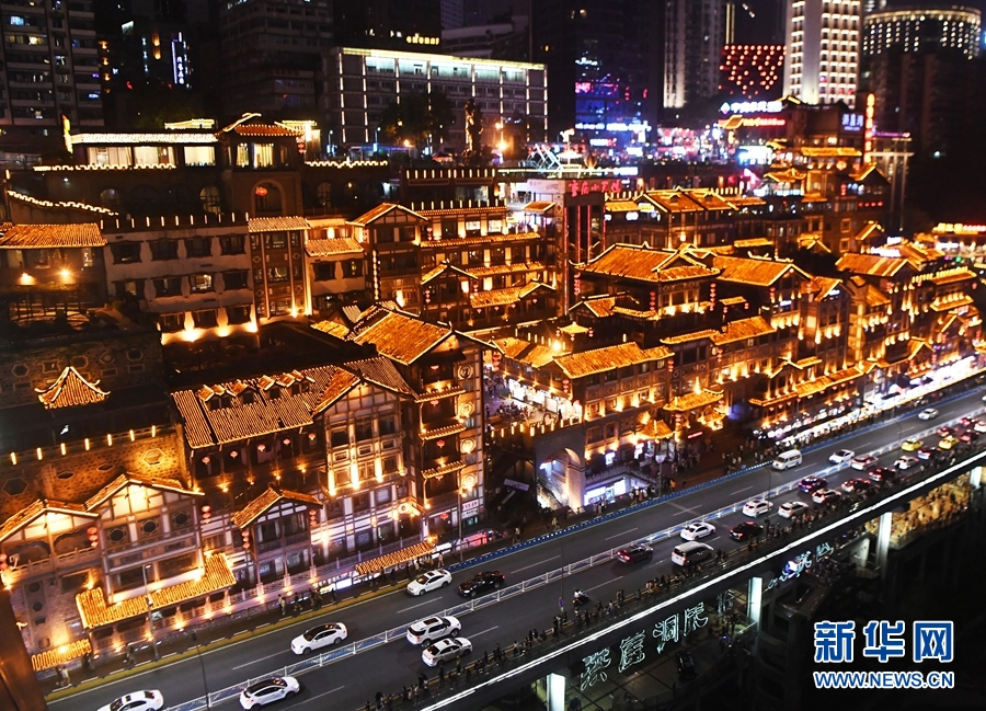 這是5月3日晚拍攝的重慶洪崖洞景區(qū)。 新華社記者王全超攝