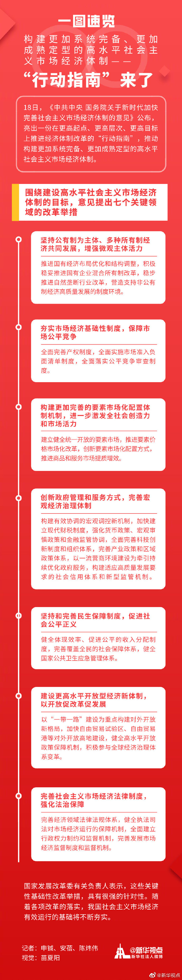 18日,《中共中央 國務(wù)院關(guān)于新時代加快完善社會主義市場經(jīng)濟體制的意見》公布,亮出一份在更高起點、更高層次、更高目標(biāo)上推進經(jīng)濟體制改革的“行動指南”。
