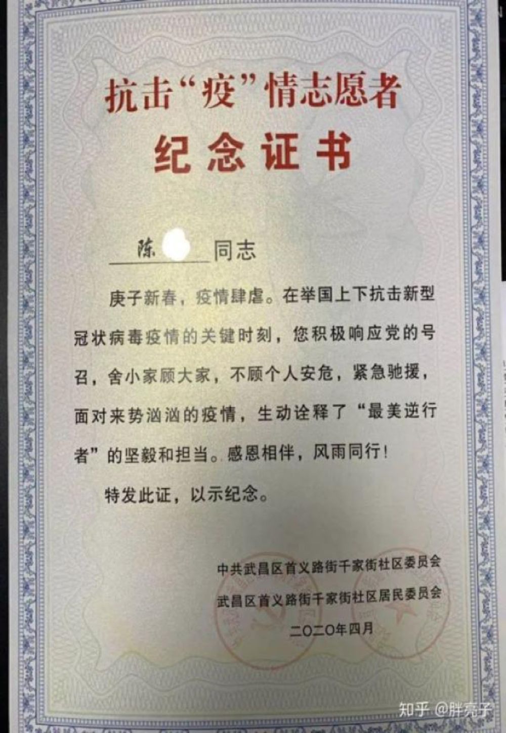 在武漢,網(wǎng)友“胖亮子”說,2月底,他的妻子接到下沉社區(qū)做志愿者的通知,可以自愿選擇,但她很快答應(yīng)了?!捌綍r(shí)有點(diǎn)潔癖而且膽小的老婆在這個時(shí)候能夠挺身而出,讓我刮目相看?!?