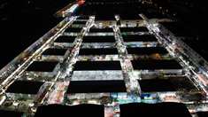 圖為6月3日拍攝的濟(jì)南環(huán)聯(lián)夜市(無(wú)人機(jī)照片)。? 新華社記者 王凱 攝