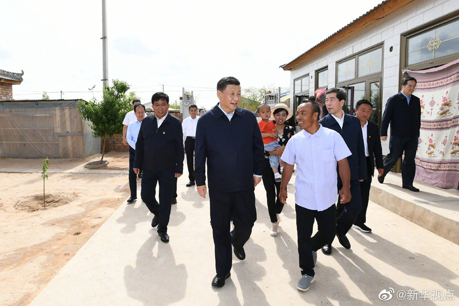 習(xí)近平總書記8日赴寧夏考察調(diào)研。當(dāng)天下午,他先后來到吳忠市紅寺堡鎮(zhèn)弘德村、黃河吳忠市城區(qū)段、金星鎮(zhèn)金花園社區(qū),了解當(dāng)?shù)赝七M(jìn)脫貧攻堅(jiān)、加強(qiáng)黃河流域生態(tài)保護(hù)、促進(jìn)民族團(tuán)結(jié)等情況。(文字記者:張曉松、朱基釵 攝影記者: 鞠鵬、謝環(huán)馳、王曄、燕雁)
