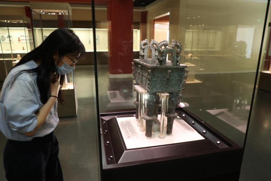 “從形制大小來看,有別于三足圓鼎,這件四足方鼎應該是西周早期貴族所用的器物。方鼎高50.7厘米、口徑23.36厘米、重26公斤。方鼎的腹部內(nèi)壁上清晰地鑄有‘大保鑄’三字銘文。據(jù)考證,這‘大?!制鋵崙摓椤!?,因此這件方鼎被稱作太保鼎?!标愖空f。