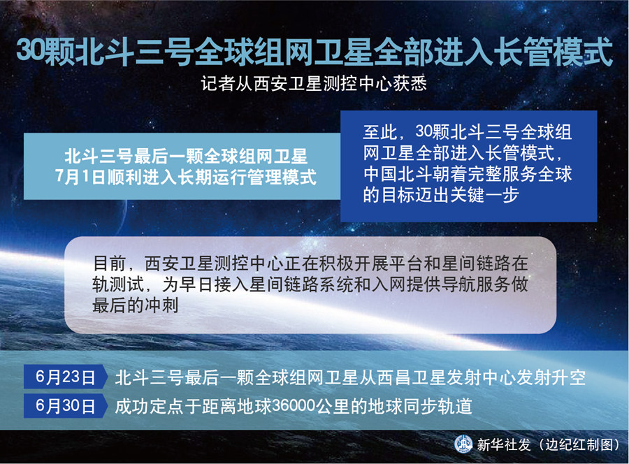 30顆北斗三號(hào)全球組網(wǎng)衛(wèi)星全部進(jìn)入長(zhǎng)管模式