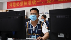 馮玥在天津市西青區(qū)張家窩鎮(zhèn)民盛里社區(qū)整理工作臺(tái)賬(7月8日攝)。新華社發(fā)