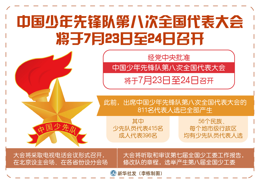 中國少年先鋒隊第八次全國代表大會將于7月23日至24日召開-新華網(wǎng)