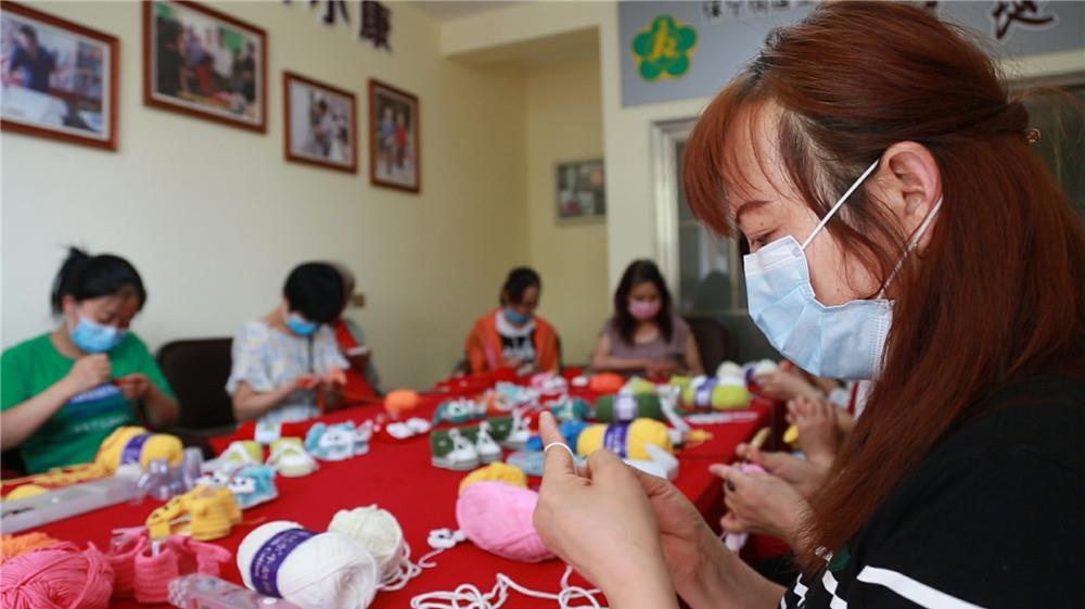 在四川省閬中市王家嘴社區(qū)殘疾人編織基地,工人在制作手工兒童鞋(6月14日攝)。新華社記者 楊進(jìn) 攝
