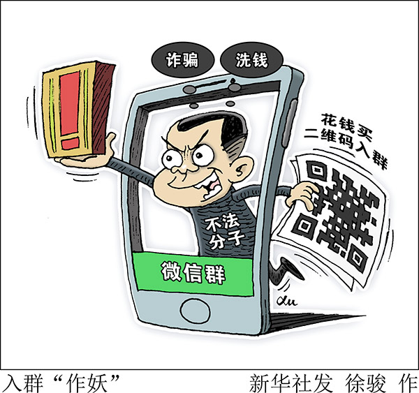 “新華視點”記者調查發(fā)現(xiàn),微信群的二維碼在網絡上被倒賣,一些不法分子借此實施詐騙或洗錢。
