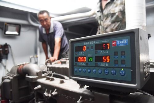 7月16日,“泰叔”錢(qián)均堂在檢查“擁軍船”內(nèi)部的機(jī)械安全情況。新華社記者 王凱 攝