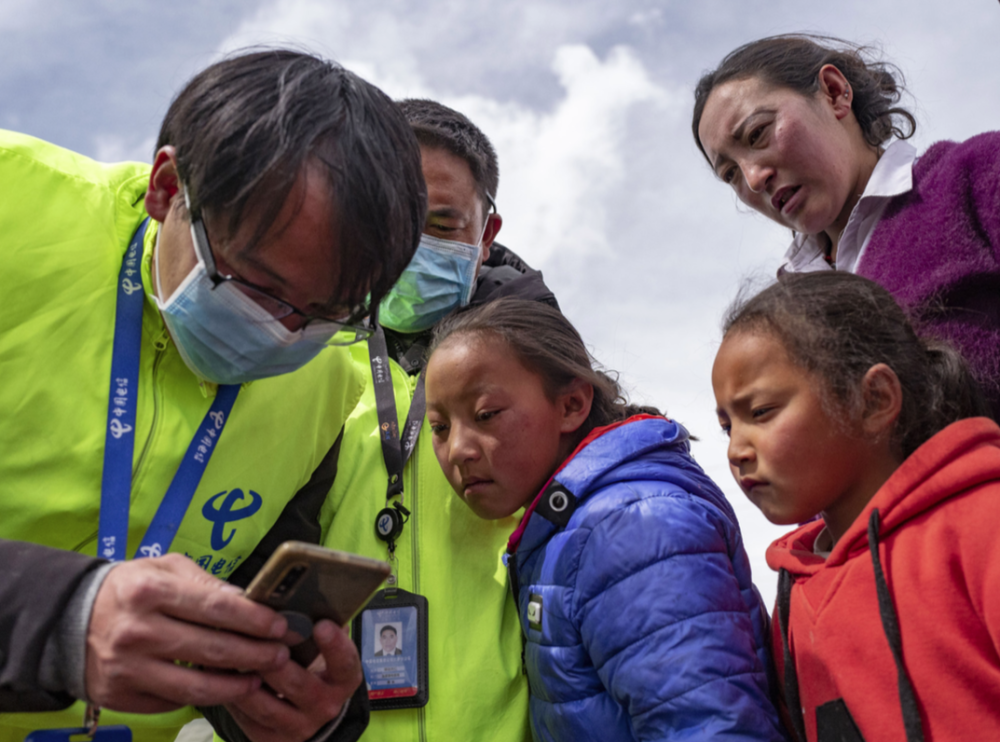 3月6日,中國電信集團(tuán)拉薩分公司當(dāng)雄電信局的技術(shù)人員在烏瑪塘鄉(xiāng)巴嘎村幫助村民調(diào)試無線網(wǎng)絡(luò),方便偏遠(yuǎn)牧區(qū)學(xué)生上好網(wǎng)課(晉美多吉/攝)