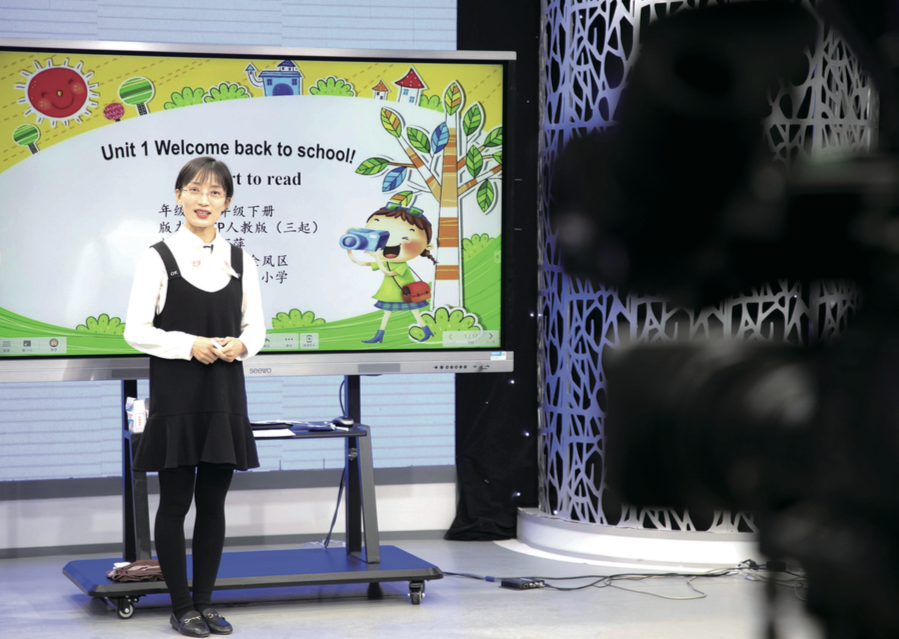 2月17日,寧夏銀川市金鳳區(qū)實驗小學教師楊玉燕在錄制“空中課堂”四年級英語課程(楊植森/攝)