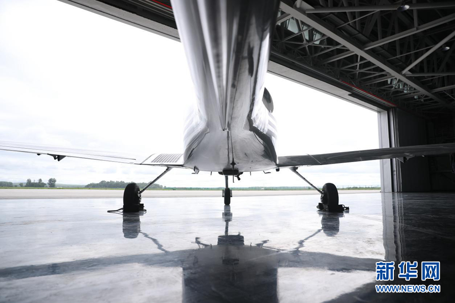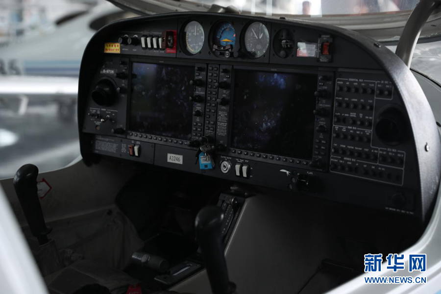 圖為機庫中待飛的單發(fā)DA40D飛機。新華網(wǎng)記者焦鵬 攝
