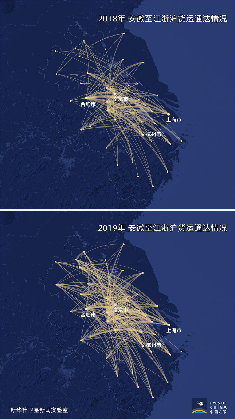 合肥維天運(yùn)通信息科技股份有限公司擁有國(guó)內(nèi)規(guī)模最大的重型卡車“互聯(lián)網(wǎng)+物流”平臺(tái),其平臺(tái)數(shù)據(jù)顯示,隨著安徽省16個(gè)地級(jí)市全部加入長(zhǎng)三角城市群,2019年第四季度,由安徽運(yùn)往江蘇、浙江和上海的貨運(yùn)單量,較2018年同期增長(zhǎng)約95%。