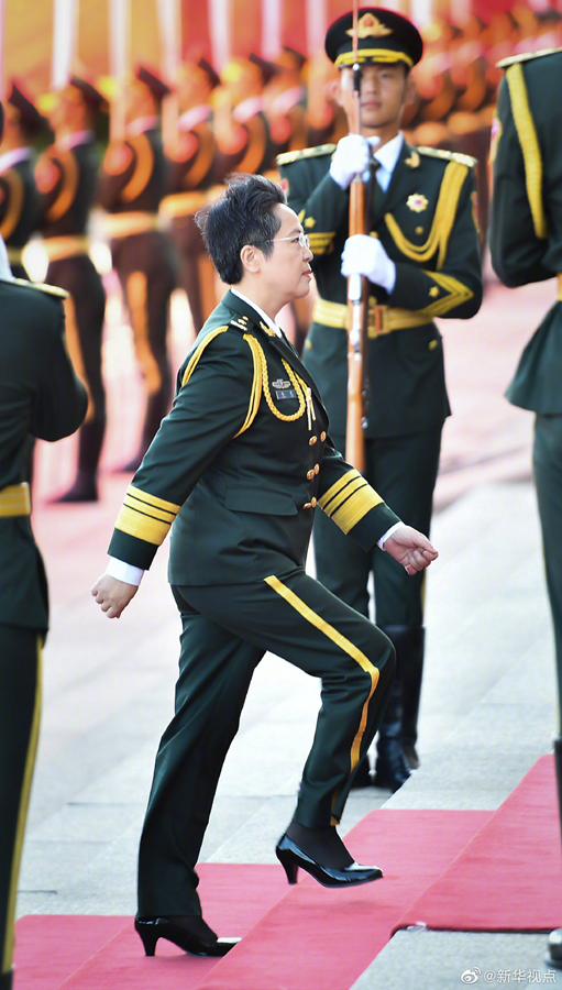 人民大會堂北門外,高擎紅旗的禮兵分列道路兩側(cè),肩槍禮兵在臺階上莊嚴佇立,青少年熱情歡呼致意。國家勛章和國家榮譽稱號獲得者沿著紅毯拾級而上,進入人民大會堂。