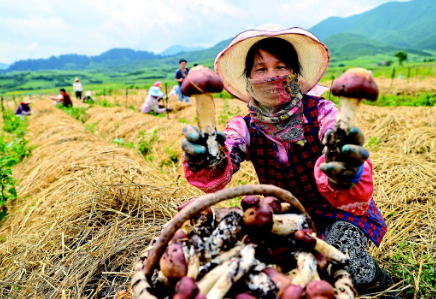 廈門援建和政縣夏潤赤松茸種植基地。赤松茸豐收農(nóng)戶樂開懷。(圖片均為黃嶸攝)
