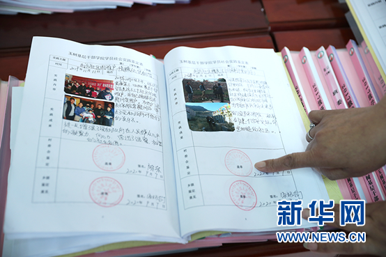 玉樹州基層干部學(xué)院李玉蘭院長(zhǎng)介紹學(xué)員考核手冊(cè)。新華網(wǎng)記者焦鵬攝