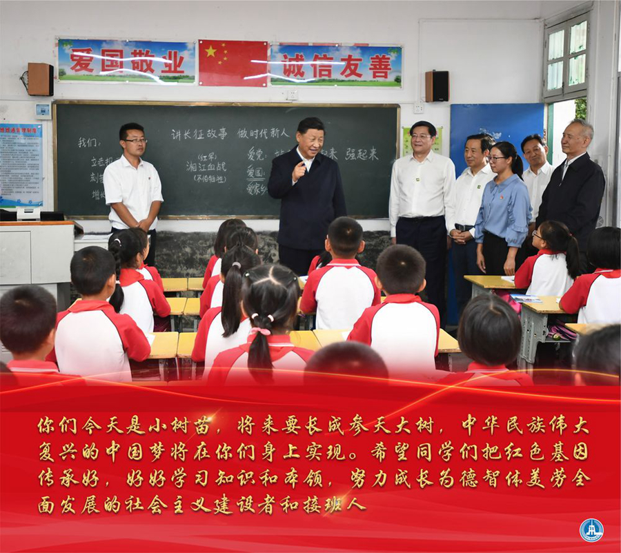 望著孩子們稚嫩而明亮的眼睛,習(xí)近平總書記飽含深情地說:“紅色基因在你們身上得到了體現(xiàn)。革命事業(yè)要一代一代傳下去。同學(xué)們要學(xué)好革命故事,銘記在心,同時(shí)把建設(shè)現(xiàn)代化的知識(shí)和本領(lǐng)也掌握好,努力做社會(huì)主義建設(shè)者和接班人。你們現(xiàn)在是一棵棵小樹苗,將來有一天就會(huì)長(zhǎng)成中華民族的參天大樹?!?/p>