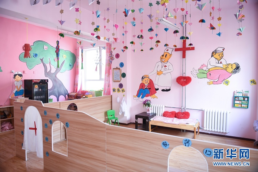 青海省果洛藏族自治州瑪沁縣拉加鎮(zhèn)中心幼兒園的興趣教學(xué)室。(新華網(wǎng)潘彬彬 攝)