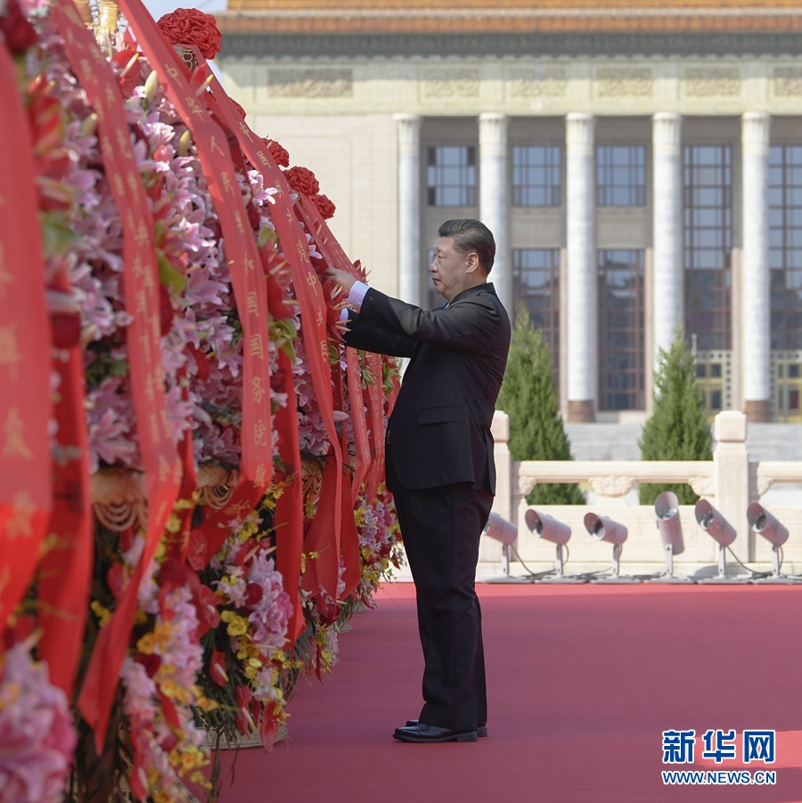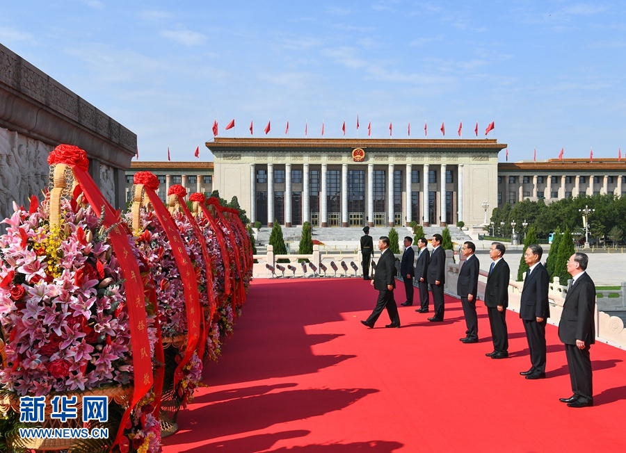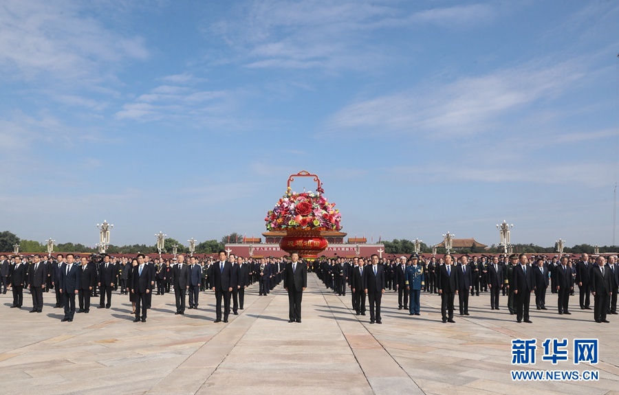 9月30日上午,黨和國家領(lǐng)導(dǎo)人習(xí)近平、李克強(qiáng)、栗戰(zhàn)書、汪洋、王滬寧、趙樂際、韓正、王岐山等來到北京天安門廣場,出席烈士紀(jì)念日向人民英雄敬獻(xiàn)花籃儀式。 新華社記者 謝環(huán)馳 攝