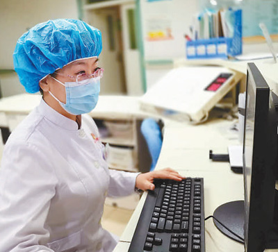 新疆醫(yī)科大學(xué)第五附屬醫(yī)院護(hù)理人員在核對(duì)醫(yī)囑。金 娜攝