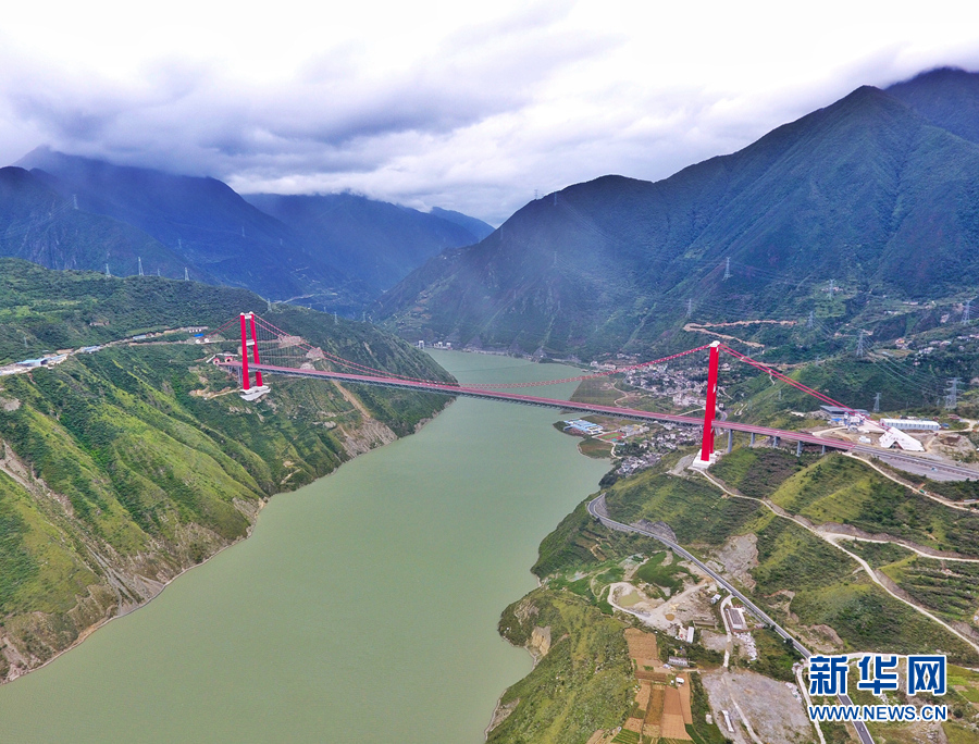 這是雅康高速上橫跨大渡河的大橋(9月16日攝,無(wú)人機(jī)照片)。新華社記者 劉坤 攝