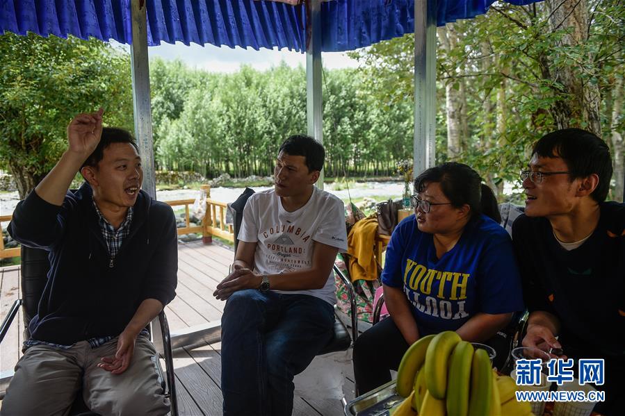 在西藏拉薩達(dá)孜區(qū),北京世紀(jì)壇醫(yī)院的援藏醫(yī)生賈萌(左一)和當(dāng)?shù)蒯t(yī)生分享診療經(jīng)驗(yàn)(8月1日攝)。新華社記者 彭子洋 攝
