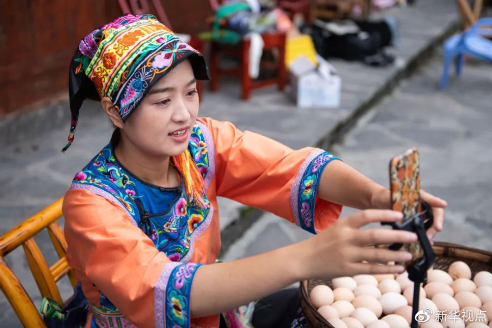 4月23日,在十八洞村拍攝的返鄉(xiāng)創(chuàng)業(yè)做直播帶貨成“網(wǎng)紅”的大學(xué)生施林嬌 新華社記者薛宇舸 攝