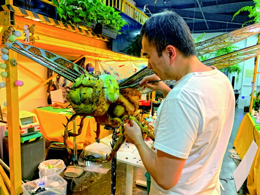 為了給人們解釋蜻蜓如何飛行覓食,寧原制作了一個放大數(shù)萬倍的彩色巨型“蜻蜓隊(duì)長”模型;為了展示蜘蛛織網(wǎng)的過程,他不僅制作了一個龐大的金色蜘蛛,還搭建了紙質(zhì)樹林立體展板,還原小蜘蛛在樹林中織網(wǎng)的場景,讓觀眾看完恍然大悟、大呼過癮。