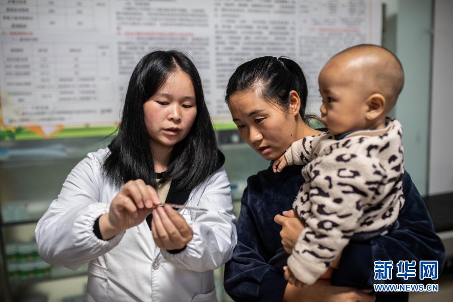 9月23日,搬遷群眾帶孩子在位于鎮(zhèn)雄縣魯家院子易地扶貧搬遷安置點的南苑社區(qū)衛(wèi)生服務(wù)站看病。新華社記者 胡超 攝