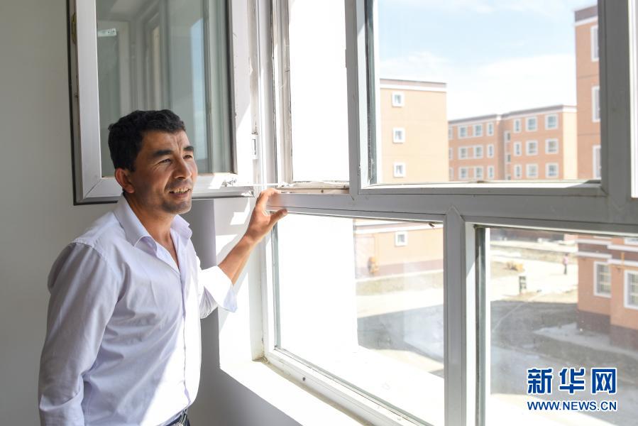 新疆葉城縣棋盤鄉(xiāng)居民來(lái)到葉城縣易地扶貧搬遷物流園區(qū)安置點(diǎn)查看新房(2019年8月19日攝)。新華社記者 丁磊 攝
