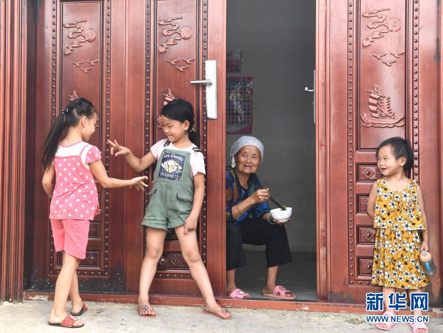 在廣西都安瑤族自治縣下坳鎮(zhèn)車家莊易地扶貧搬遷安置新區(qū),小朋友在玩耍(8月18日攝)。新華社記者 周華 攝