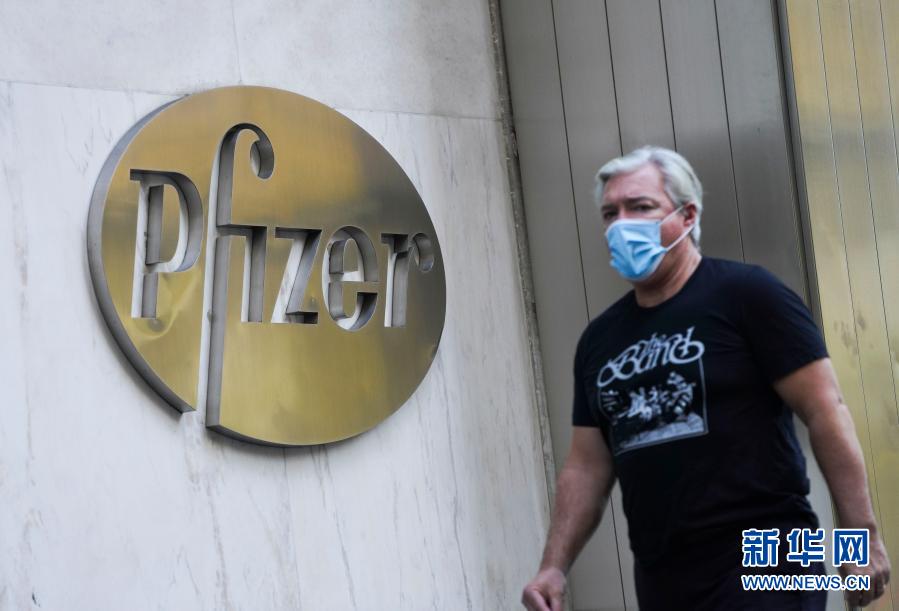 11月9日,行人從位于美國(guó)紐約的輝瑞全球總部大樓前走過(guò)。新華社記者 王迎 攝