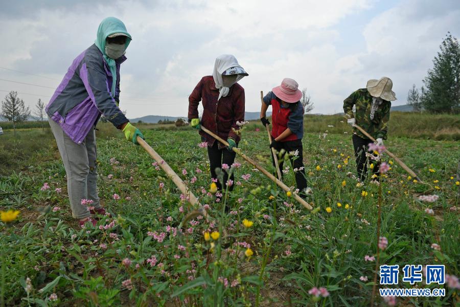 農(nóng)民在寧夏西吉縣的艾草種植基地勞作(2018年8月30日攝)。新華社記者 王鵬 攝