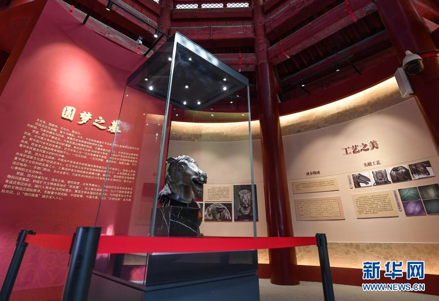 12月1日,馬首銅像在圓明園正覺(jué)寺文殊亭陳列展出。新華社記者 李賀 攝