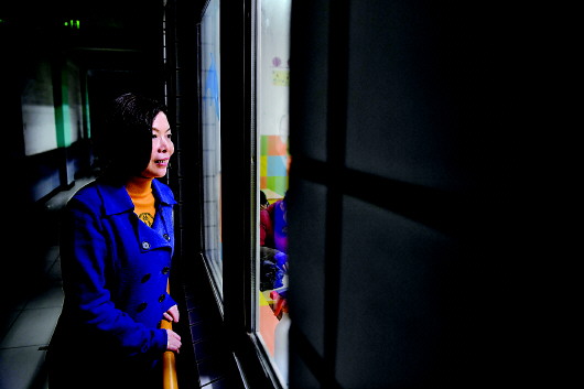 11月25日,蕪湖市盲人學校校長席蔚菁在教室外查看學生自習情況。新華社記者劉軍喜攝