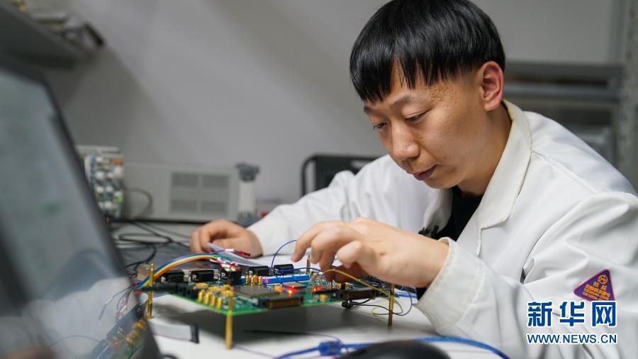 在中科院長春光機所,科研人員隋延林調(diào)試相位計數(shù)字電路板(11月25日攝)。新華社發(fā)(王帆 攝)