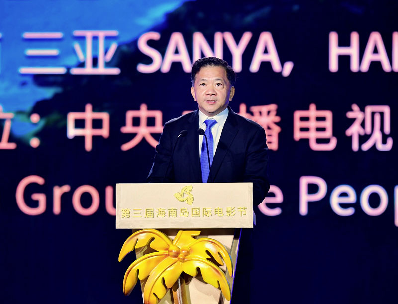 △中宣部副部長、中央廣播電視總臺(tái)臺(tái)長、第三屆海南島國際電影節(jié)組委會(huì)主席慎海雄致辭并宣布開幕