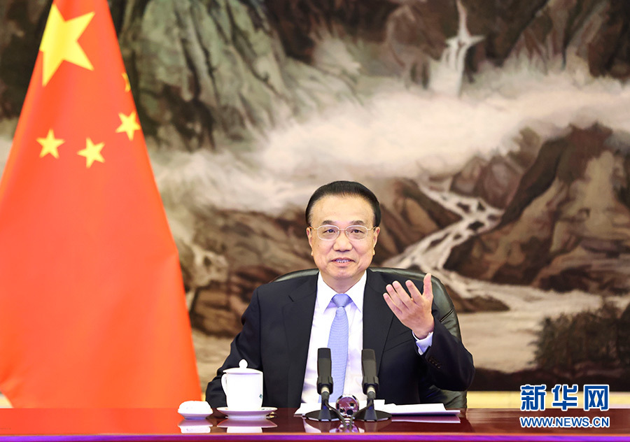 12月8日,國務院總理李克強在北京人民大會堂視頻會見國際貨幣基金組織總裁格奧爾基耶娃。 新華社記者 龐興雷 攝