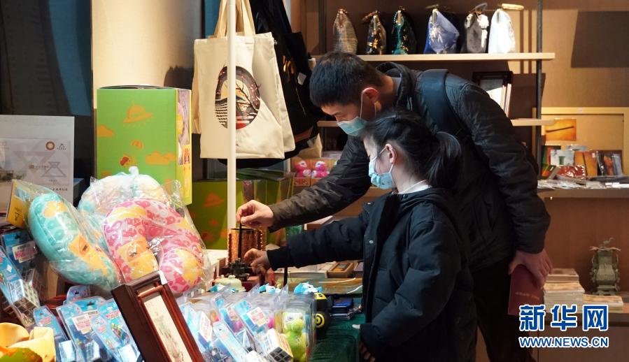 游客在河南博物院文創(chuàng)區(qū)選購文創(chuàng)產(chǎn)品(12月8日攝)。新華社記者 袁月明 攝
