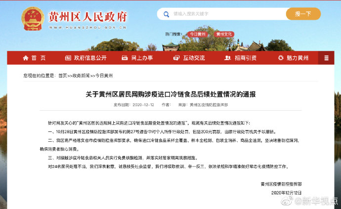 湖北黃州撤銷居民違規(guī)網(wǎng)購進口冷鏈?zhǔn)称诽幜P