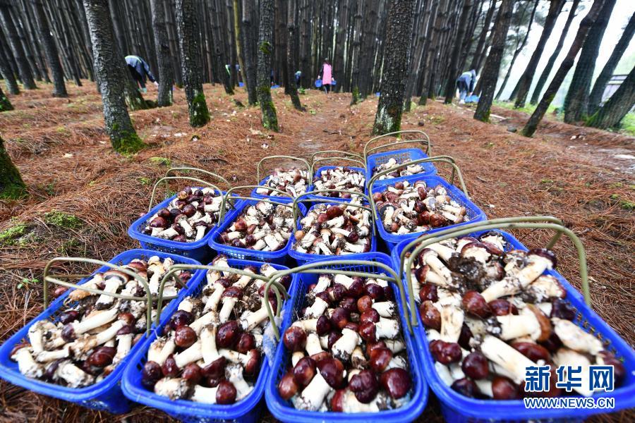 這是村民在貴州省威寧縣觀風海鎮(zhèn)沙子坡林場采摘的林下食用菌(6月18日攝)。新華社記者 楊文斌 攝