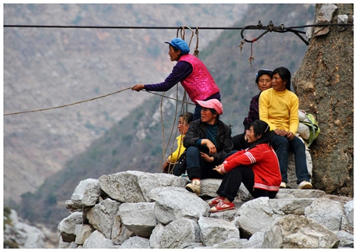 ????2013年3月7日,云南省會澤縣火紅鄉(xiāng)的村民乘坐溜索到貴州省威寧縣。楊文斌 攝