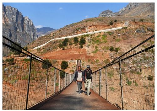 ????2019年12月11日,云南省會澤縣馬路鄉(xiāng)的村民通過跨江人行橋到貴州省威寧縣。楊文斌 攝