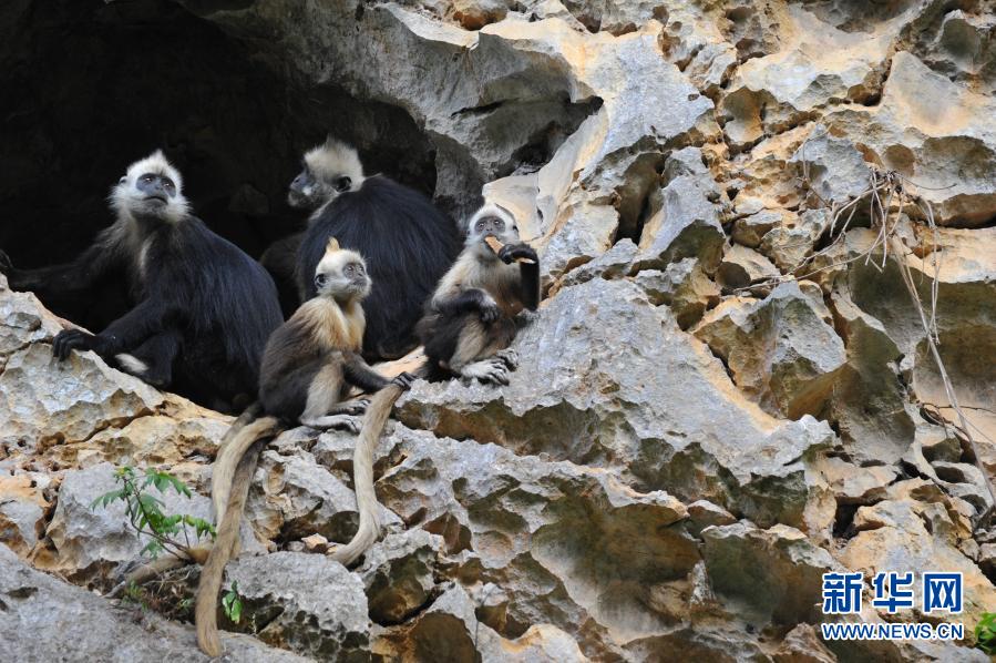 2020年12月19日,在廣西崇左白頭葉猴國(guó)家級(jí)自然保護(hù)區(qū)拍攝的白頭葉猴(資料照片)。新華社發(fā)(廣西崇左白頭葉猴國(guó)家級(jí)自然保護(hù)區(qū)提供)