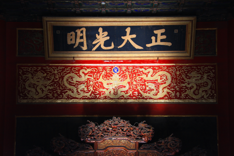 “正大光明”匾由順治帝題寫,懸掛于乾清宮寶座上方。因雍正帝視其為宮中最高且最難接觸之地,故決定將立儲(chǔ)密折存放其后。