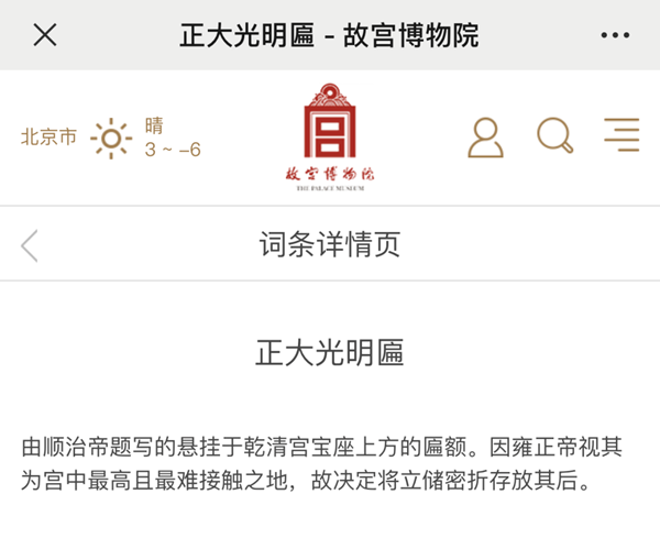 會(huì)反射到故宮的“正大光明”匾上
